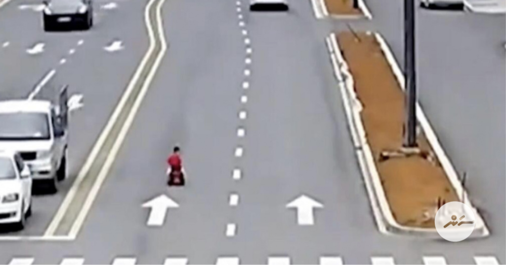 ޗައިނާގެ ރަސްމީ ޗެނަލެއް ކަމަށްވާ ސީޖީޓީއެންގެ އިންސްޓަގްރާމްގައި ޙިއްސާކޮށްފައިވާ މި ވީޑިއޯއިން ފެންނަ ގޮތުގައި، ހަތަރު އަނގޮޅި ކަންމައްޗަކުން ދެ އަހަރުގެ ކުޑަކުއްޖާ އޭނާގެ ޓޯއީ އެކްސްކަވޭޓަރު ދުއްވާފައި މަގަށް ނުކުންނައިރު އެ މަގުން ކާރުތަކާއި އެހެނިހެން ބަރު އުޅަނދުތައް އޭނާގެ ކައިރިން ބާރަށް ދުއްވާފައިދެއެވެ.