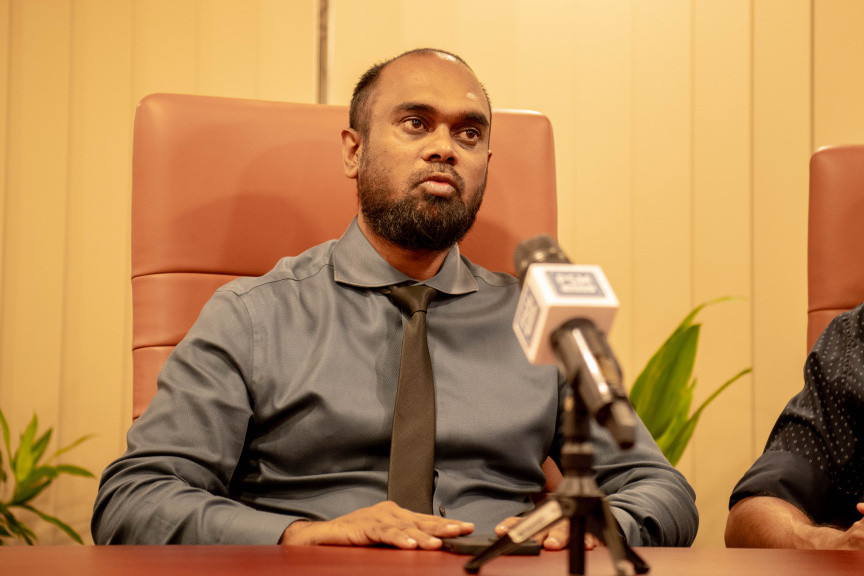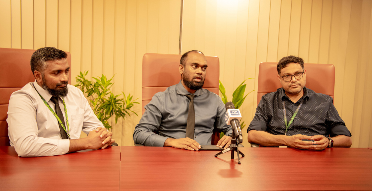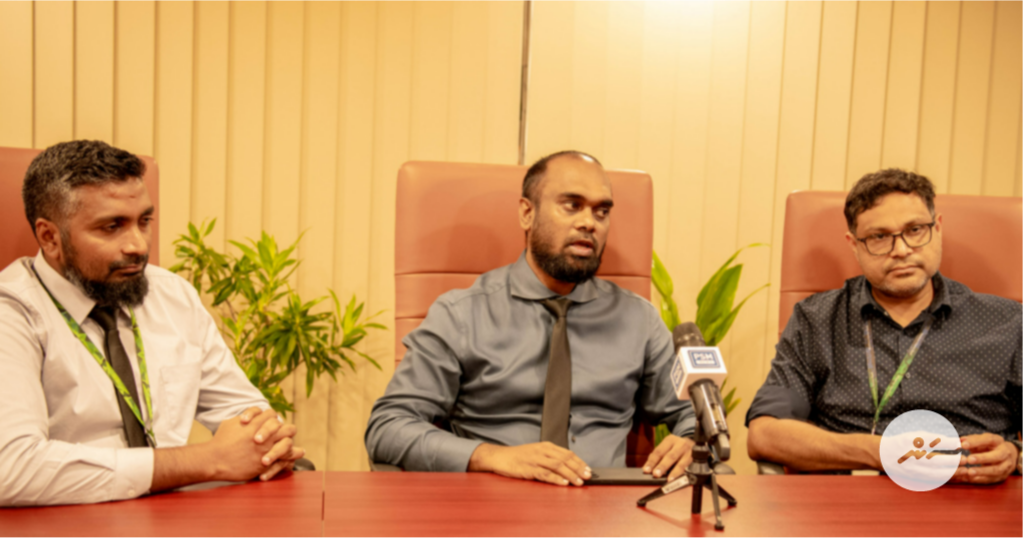 ޕްރޮޑަކްޓް ލޯންޗު ކުރުމުގެ ރަސްމިއްޔާތުގައި އެމްއައިބީގެ ޗީފް ފައިނޭންޝިއަލް އޮފިސާ އަލީ ވާސިފް ވާހަކަ ދައްކަވަނީ-- ސަން ފޮޓޯ:މުހައްމަދު މާވީ