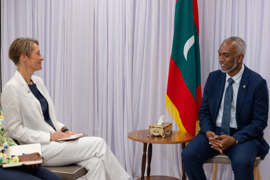 އިންތިޚާބީ ރައީސް ޑރ. މުޙައްމަދު މުއިއްޒު ބްރިޓިޝް ހައި ކޮމިޝަނަރާ ބައްދަލުކުރެއްވުން-- ސަން ފޮޓޯ/ އިސްމާއިލް މުނައްވަރު