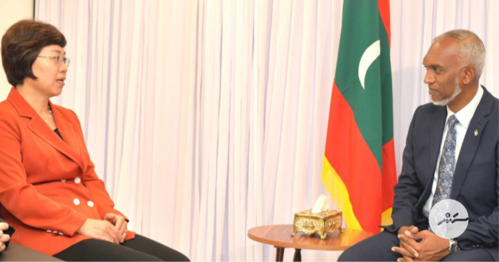 އިންތިޚާބީ ރައީސް ޑރ. މުޙައްމަދު މުއިއްޒު ޗައިނާ ސަފީރު ވަންގް ލިޒިންއާ ބައްދަލުކުރެއްވުން-- ސަން ފޮޓޯ