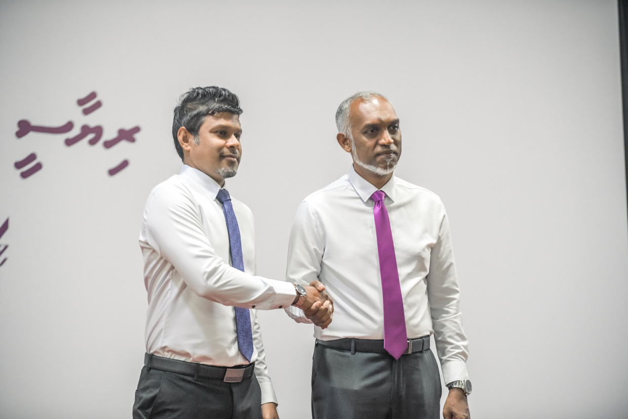 ޕީއެންސީއާއި އެއް ލީޑާޝިޕަކުން ހިންގާ ޕީޕީއެމުން މިރޭ ކުރި ޓުވީޓެއްގައި ބުނީ ޕީއެންސީން މިރޭ ބޭއްވި މަޖިލިސް ބައްދަލުވުމެއްގައި އެ ޕާޓީގެ ރައީސް ކަމަށް ޑރ. މުއިއްޒު އަދި ނައިބު ރައީސް ކަމަށް ހުސައިން މުހައްމަދު ލަތީފް އިންތިޚާބު ކޮށްފައިވާ ކަމަށެވެ. މީގެ އިތުރުން، އެ ޕާޓީގެ ރައީސް ކަމުގައި ހުންނެވި އަބްދުއްރަހީމް އަބްދުﷲ ވަނީ އެ ޕާޓީގެ ޗެއާޕާސަން ކަމަށް އިންތިޚާބު ކޮށްފައެވެ.