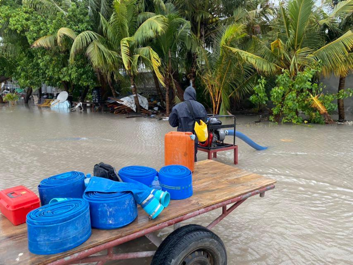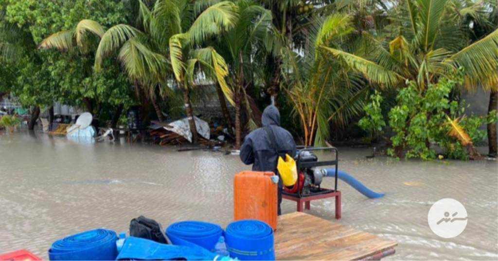 ރާއްޖެއަށް ކުރަމުންދާ ވިއްސާރައިގައި ރަށެއްގައި ފެންބޮޑުވެފައި-- ފޮޓޯ/ އެންޑީއެމްއޭ
