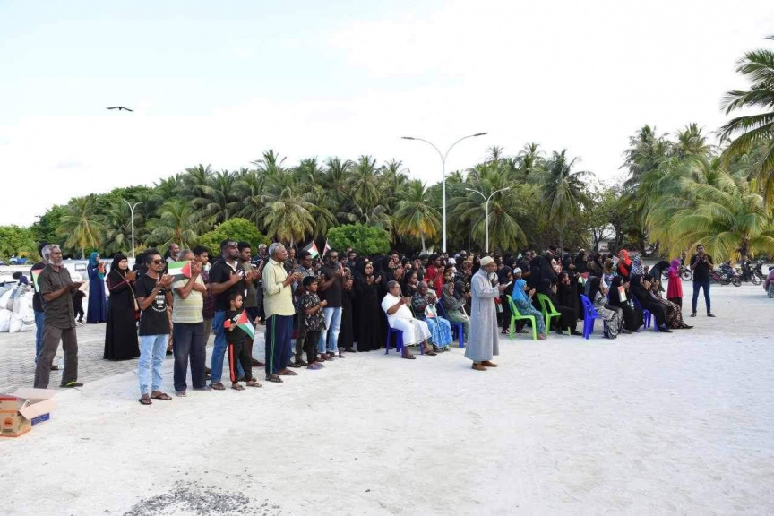 ހާލުގައި ޖެހިފައިވާ ފަލަސްތީނުގެ ރައްޔިތުންނަށް އެހީތެރިވުމަށް ހުކުރު ދުވަހު ރ. ވާދޫގައި ބޭއްވި އެއްވުމުގެ ތެރެއިން--