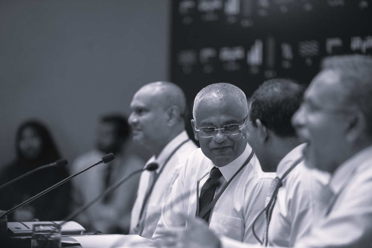 ޑިސެމްބަރު 15، 2019: އެމްޑީޕީގެ އޭރުގެ ރައީސް މުހައްމަދު ނަޝީދާއި ރައީސް އިބްރާހިމް މުހައްމަދު ޞާލިޙް ---- ސަން ފޮޓޯ/ މުޒައްޔިން ނާޒިމް