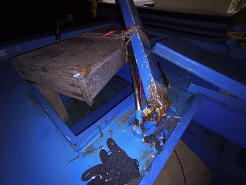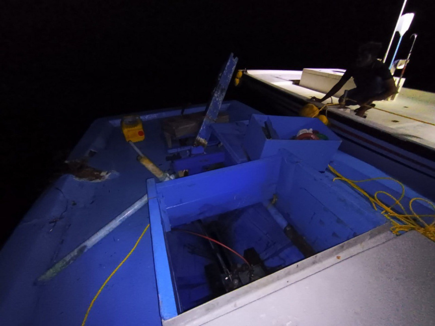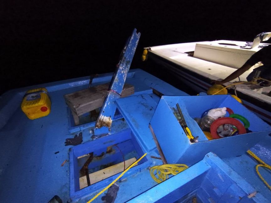 ހއ. ހުވަހަންދޫ ކައިރިން ދަތުރުކުރަމުންދިޔަ ދޯންޏަކާއި ލޯންޗެއް ޖެހި، ދޯންޏަށް ލިބިފައިވާ ގެއްލުންތައް --- ފޮޓޯ/ އިހަވަންދޫ ކައުންސިލަރު އަހުމަދު ރިލްވާން