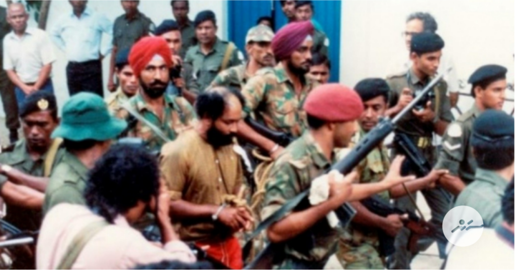 ސްރީލަންކާގެ ޕީޕަލް ލިބަރޭޝަން އޮފް ޓެމިލް އިލާމްގެ 80 ހަނގުރާމަވެރީން، ދިވެހީންގެ ދެ ޚާއިނުން ކަމަށްވާ އަބްދުﷲ ލުތުފީ އާއި އަހުމަދު ނާސިރާ އެކު ރާއްޖެ އަރައި ސިފައިންގެ މައިމަރުކަޒަށް އެއް ފަހަރާ ތިން ދިމާލުން ވަރުގަދަ ހަމަލާތަކެއްދިނެވެ. އޭގެ ތެރޭގައި ޕޮލިސް ހެޑްކްއާޓަރަށް ދިން ހަމަލާއާއި މެއިންގޭޓަށް ދިން ހަމަލާގެ އިތުރުން ހުޅަނގުފަރާތު ފާރުގޮއްވާލައިގެން ދިން ހަމަލާ ހިމެނެއެވެ. ހަމައެއާ އެކު ރިޔާސީގަނޑުވަރުގެ ދެ ގޭޓަށް ވަނީ ހަމަލާތައް ދީފައެވެ.