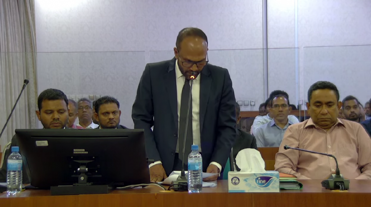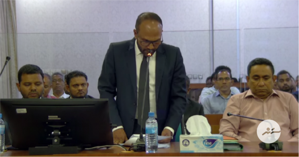 އަޑުއެހުމުގައި ފަހު ބަސް ހުށަހަޅަމުން ރައީސް ޔާމީންގެ އިސް ގާނޫނީ ވަކީލް ޑރ. މުޙައްމަދު ޖަމީލް އަޙްމަދު ވިދާޅުވީ ދަށު ކޯޓުގެ މަރުހަލާގައި ފަނޑިޔާރު ހެކި ބަލައިގަތީ އިސްލާމީ ޝަރީއަތާއި ގާނޫނުތަކާ ޚިލާފަށްކަމަށެވެ.