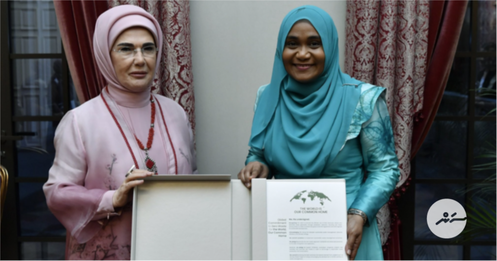 އެ ބައްދަލުވުމަށްފަހު ތުރުކީގެ ފަސްޓް ލޭޑީ އެމީން އެކްސްގައި ކުރެއްވި ޕޯސްޓެއްގައި ވަނީ ކުނި މަދުކުރުގެ މަސައްކަތްތަކަށް ޚާއްސަކޮށްފައިވާ ގްލޯބަލް ޒީރޯ ވޭސްޓް ގުޑްވިލް ޑިކްލެރޭޝަންގައި ސާޖިދާ ސޮއި ކުރެއްވުމުން އެކަމަށް ޝުކުރު އަދައިކުރައްވައިފައެވެ.