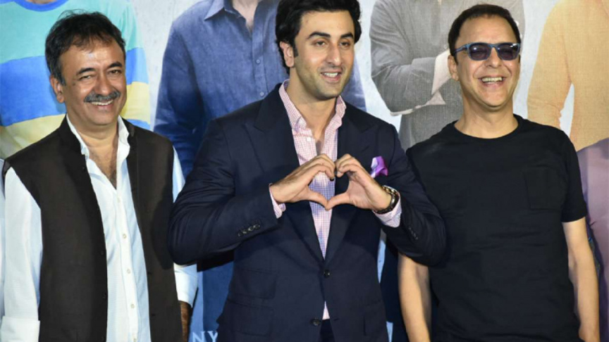 ޑައިރެކްޓަރު ރާޖް ކުމާރު ހިރާނީ އެކްޓަރު ރަންބީރާއެކު ފިލްމު "ސަންޖޫ"ގެ ޕްރޮމޯޝަން ހަފުލާއެއްގައި-- ފޮޓޯ/ އެންޑީޓީވީ