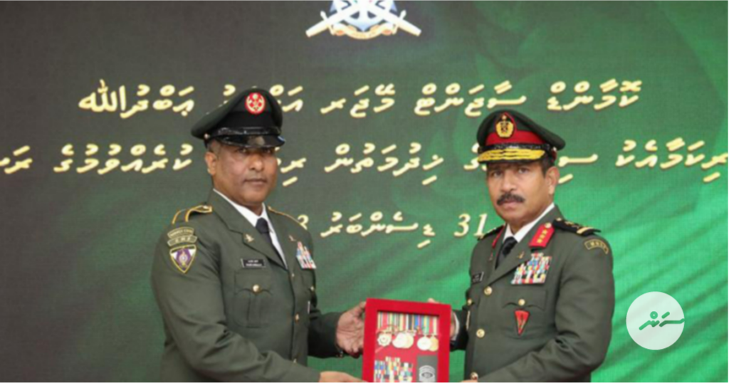 އޭނާ ޝަރަފުވެރިކަމާއެކު ސިފައިންގެ ޚިދުމަތުން ރިޓަޔާ ކުރެއްވުމަށް ހުށަހެޅުއްވިއިރު ހުންނެވީ އިސްލާމިކް މިލިޓަރީ ކައުންޓާ ޓެރަރިޒަމް ކޯލިޝަން ސެންޓަރުގައި އަސްކަރިއްޔާ ތަމްސީލްކުރައްވާ މެންބަރެއްގެ ގޮތުގައި ކަމަށް ވެސް އެމްއެންޑީއެފުން ފާހަގަކުރިއެވެ.