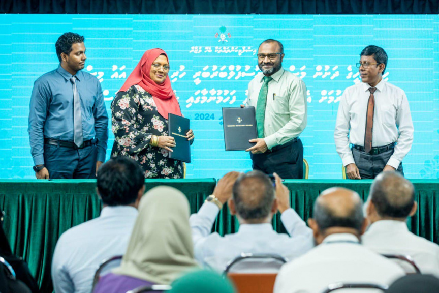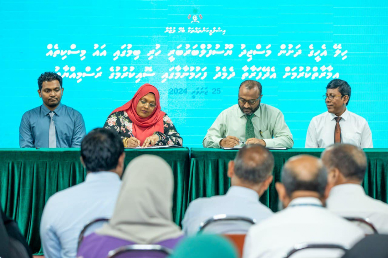 ޔޫސުފުލްބަރުބަރީ ހުރި ބިމުގައި ދެ ބުރީގެ އައު މިސްކިތެއް އެޅުމަށް ސޮއިކުރުމުގެ ރަސްމިއްޔާތުގެ ތެރެއިން --- ފޮޓޯ/އިސްލާމިކް މިނިސްޓްރީ