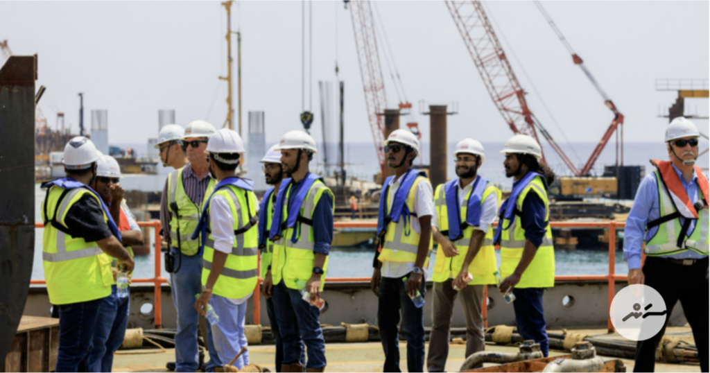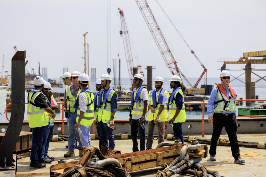 އިންފްރާސްޓްރަކްޗާ މިނިސްޓްރީގެ ސްޓޭޓް އަދި ޑެޕިއުޓީ މިނިސްޓަރުން ބުރިޖުގެ މަސައްކަތް ބައްލަވައިލެއްވުން: އެ ބުރިޖުގެ 33.4 ޕަސެންޓް މަސައްކަތް ނިމިފައިވާ ކަމަށް މިނިސްޓްރީން ބުނޭ -- ފޮޓޯ/ އިންފްރާސްޓްރަކްޗާ މިނިސްޓްރީ