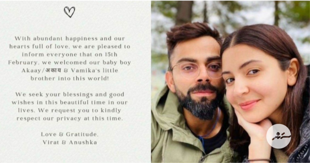އަނުޝްކާއާއި ވިރާޓުގެ ފަރާތުން އިންސްޓަގްރާމްގައި ކުރި ޕޯސްޓެއްގައި ބުނެފައިވަނީ މި މަހުގެ 15 ވަނަ ދުވަހު އެ އާއިލާއަށް އާ މެންބަރެއް އިތުރުވެފައިވާ ކަމަށާއި އަންހެން ދަރިފުޅު ވަމީކާ ދައްތައަކަށް ވެފައިވާކަމަށެވެ. ދަރިފުޅުގެ ނަމަކީ އަކާއި ކަމަށާއި އާއިލާއަށް މި ވަގުތު ޕްރައިވެސީ ދިނުމަށް އާއްމުންގެ ފަރާތުން އަނުޝްކާ ވަނީ އެދިފައެވެ.