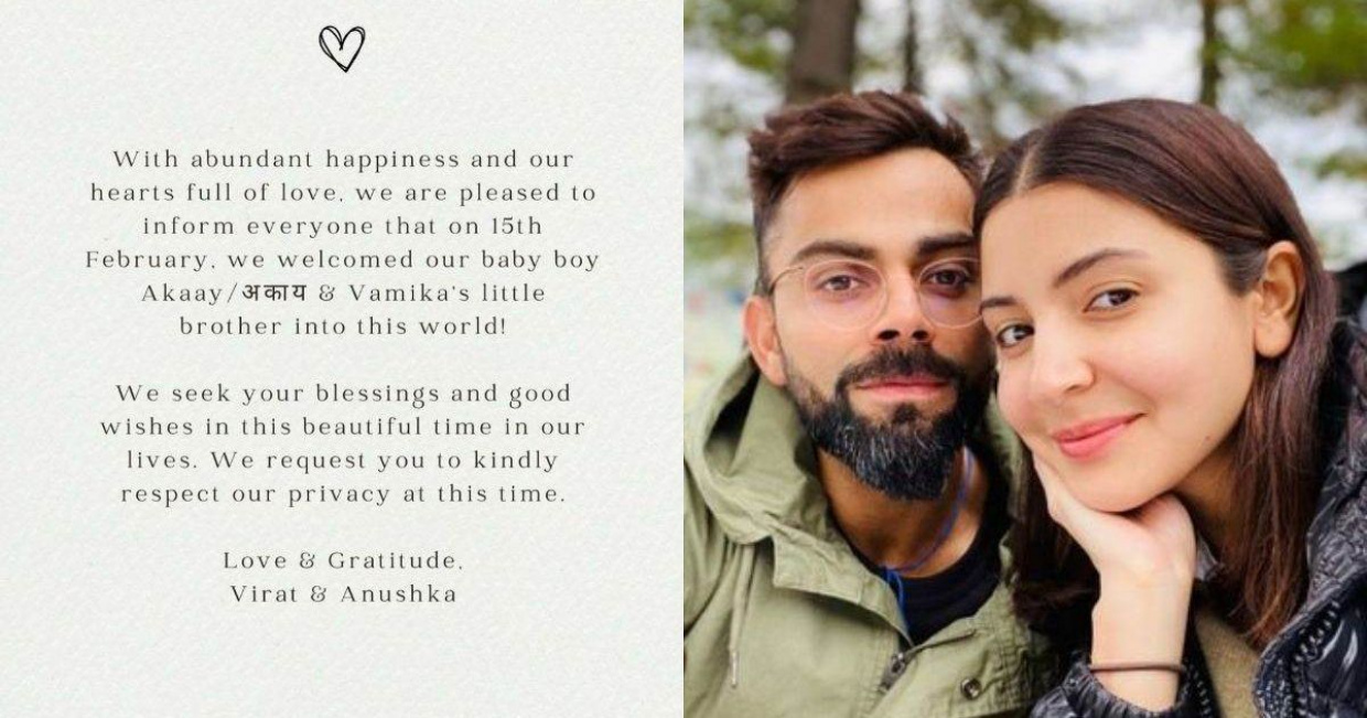 ބޮލީވުޑްގެ ބަތަލާ އަނުޝްކާއާއި ފިރިމީހާ ވިރާޓް ކޮލީއަށް ފިރިހެން ކުއްޖަކު ލިބިއްޖެއެވެ.