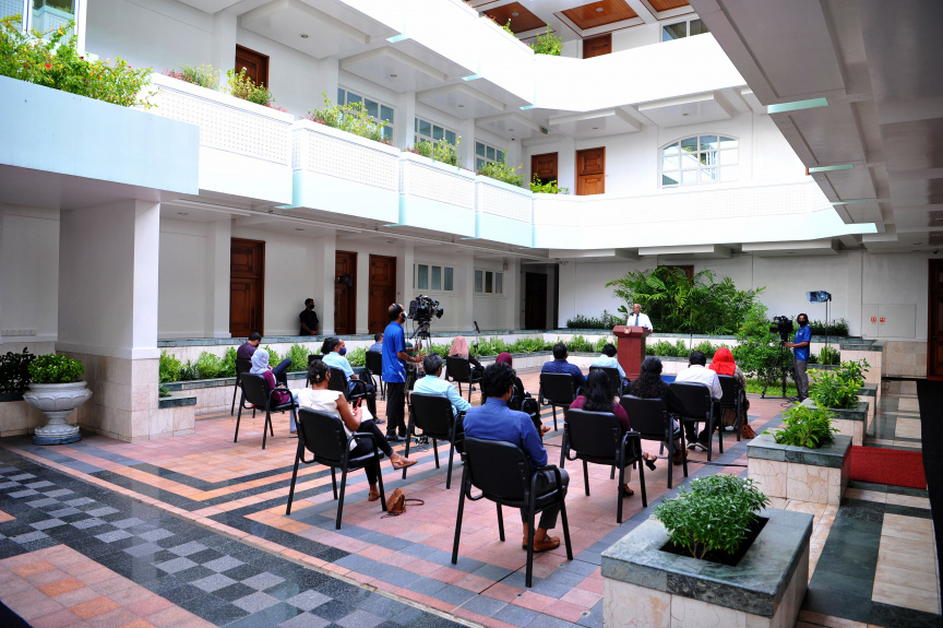 ރައީސް އޮފީހުގައި މީގެ ކުރިން ބޭއްވި ނޫސްވެރިންގެ ބައްދަލުވުމެއްގެ ތެރެއިން: ސަރުކާރުތަކުން ނޫސްތަކުގެ މާލީ މިނިވަންކަމަށް މަސައްކަތްކުރަން ޖެހޭ --- ފޮޓޯ/ ރައީސް އޮފިސް