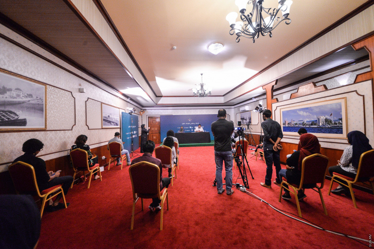 މާޗް 27، 2020: ނޫސްވެރިންގެ ބައްދަލުވުމެއްގައި ނޫސްވެރިއަކު ފޮތުގައި ނޯޓުކުރަނީ -- ސަން ފޮޓޯ/ ފަޔާޒު މޫސާ