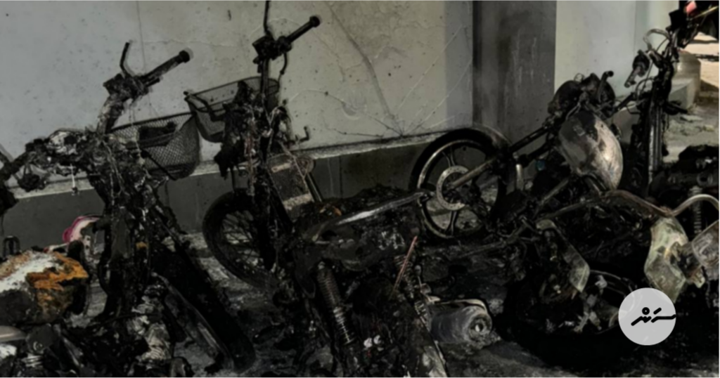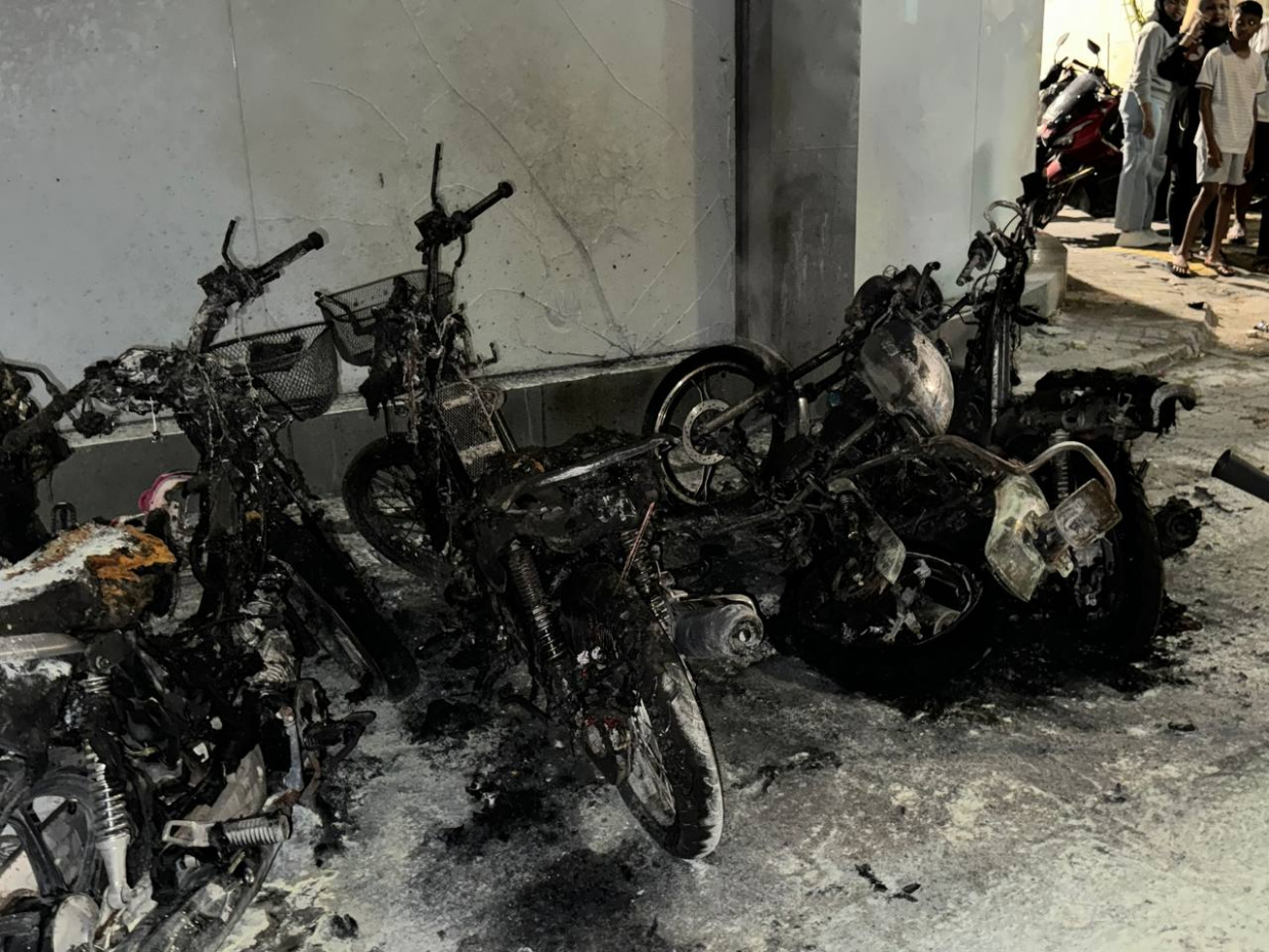އެ ހާދިސާގައި ތިން ސައިކަލެއް ބޭނުންނުކުރެވޭ މިންވަރަށް އަނދާ އަޅިއަށްވިއެވެ. އަދި، އެ ސައިކަލުތައް ކައިރީގައި ޕާކުކޮށްފައި ހުރި އިތުރު ހަތަރު ސައިކަލާއި ވޭނަކަށް ވެސް އަލިފާނުގެ ސަބަބުން ގެއްލުންވިއެވެ.