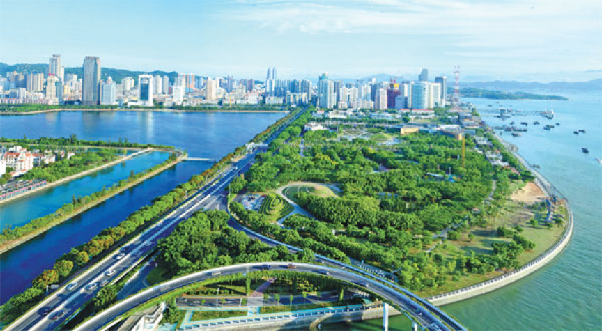 ޗައިނާގެ ޝިއާމެން ސިޓީގެ ބުރިޖުތަކާއި އުސް އިމާރާތްތަކާ އެކު ފެހި ކަމާއި ގުދުރަތީ ރީތިކަން ދައްކުވައިދޭ ފޮޓޯއެއް: އެ ސިޓީއަކީ މުޅި ޗައިނާގައި ވެސް އެންމެ އީކޯ ފްރެންޑްލީ އެއް ސިޓީ، އެ ތަނަށް ރާއްޖެއިން މިހާރު ޑައިރެކްޓް ފްލައިޓްތައް ބާއްވާ -- ސަން ފޮޓޯ