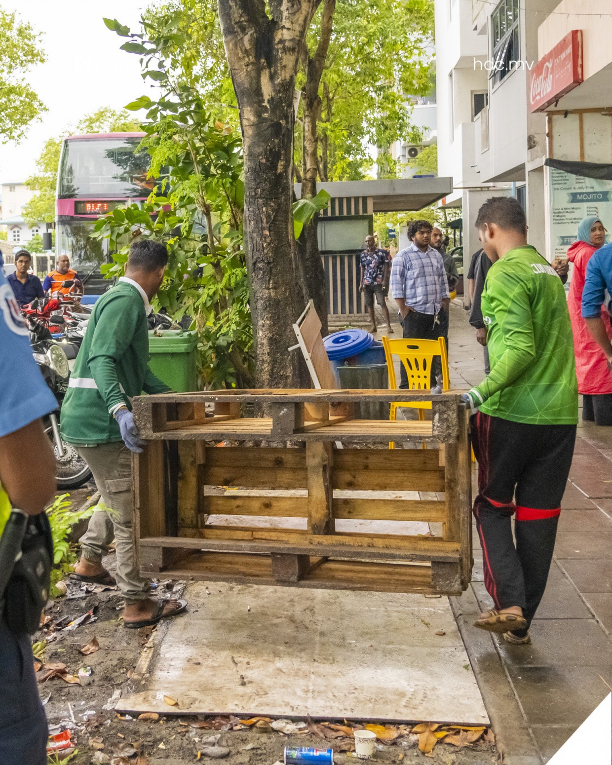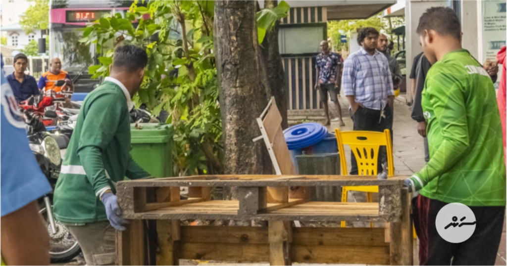އެޗްޑީސީން ނިކުމެ ދުވާރުމަތި ސާފުކުރަން ފެށީ ދުވާރުމަތީ ހުރި މޭޒުތަކާއި ގޮނޑިތައް ނެގުމަށް މުއްދަތެއްދީ، އެ މުއްދަތު ހަމަވީއިރު ވެސް ބައެއް މޭޒުތަކާއި ގޮނޑިތައް ނަގާފައި ނުވުމުންނެވެ.
