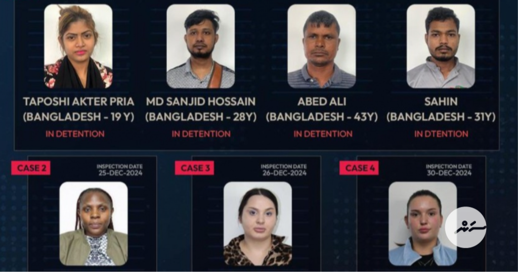 އިމިގްރޭޝަންގެ ބެލުމުގެ ދަށަށް ގެންގޮސްފައިވަނީ ބިދޭސީ ހަތަރު އަންހެނަކާއި ތިން ފިރިހެނެކެވެ.