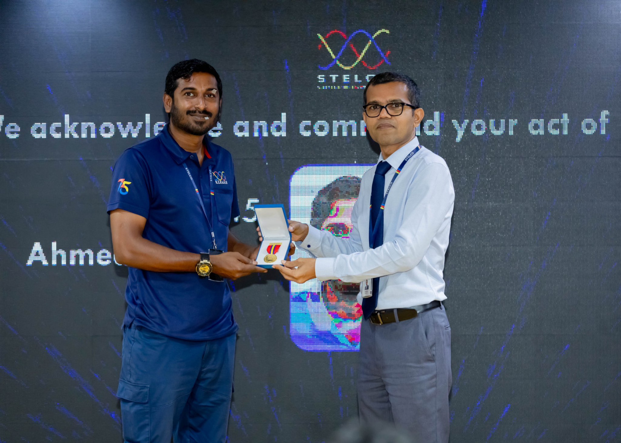 ހުޅުމާލޭ ދެވަނަ ފިޔަވަހީގައި ހުރި ޓްރާންސްފޯމަރަކުން މީހަކު ވައްކަން ކުރަނިކޮށް، އެތަނަށް ގޮސް އެކަން ހުއްޓުވި ސްޓެލްކޯގެ މުވައްޒަފުންނަށް ހިތްވަރުދިނުމުގެ ގޮތުން އެ ކުންފުނިން ''މެޑަލް އޮފް ބްރޭވަރީ" ދީފިއެވެ.