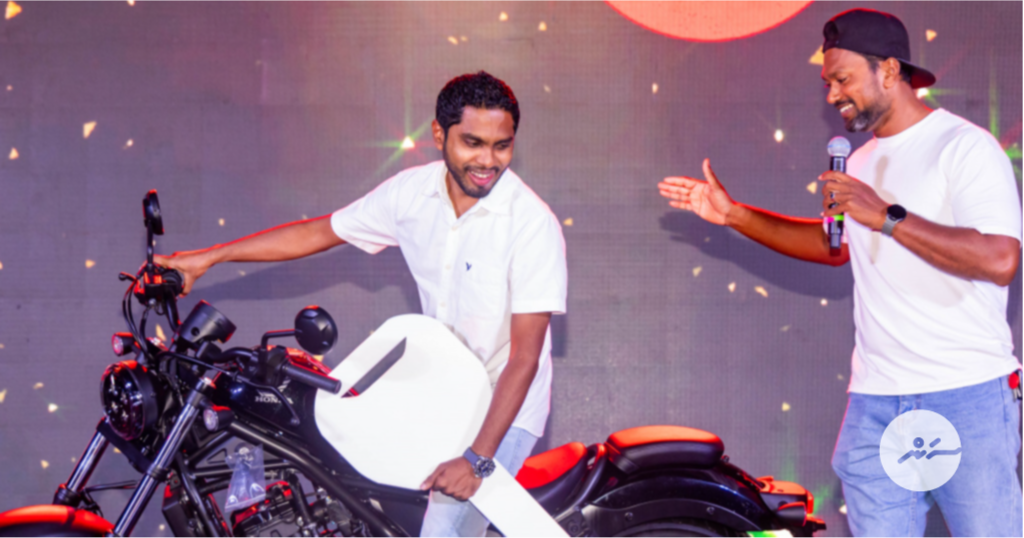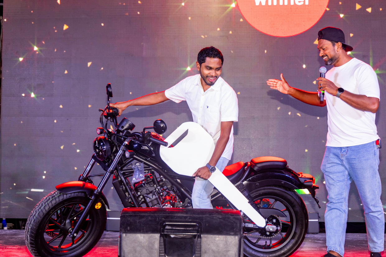 މި ޕްރޮމޯޝަނުގެ އެންމެ އަގުހުރި އިނާމު، ހޮންޑާ ރިބެލްގެ ނަސީބުވެރިޔަކަށް އިބްރާހިމް އަފްރާ ހޮވި، ހުޅުމާލެ ރުއްގަނޑުގައި ބޭއްވި ކުލަގަދަ ޝޯއެއްގައި ވަނީ އިނާމު ހަވާލުކޮށްފައެވެ.