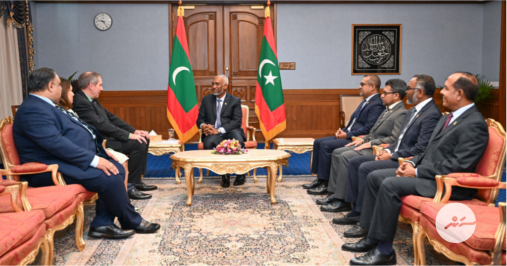 އެގައުމާ އެއްކޮށް، ސަރުކާރުން މިއަދު މަޝްވަރާކުރީ އިނގިރޭސިވިލާތުން ރާއްޖެއަށް ކަނޑައެޅި އާ ސަފީރު ނިކޮލަސް ޑޭވިޑް ލޯގެ ސަފީރުކަމުގެ ފަތްކޮޅު ރައީސް ޑރ. މުޙައްމަދު މުއިއްޒަށް އަރުވަން ރައީސް އޮފީހުގައި ބޭއްވި ރަސްމިއްޔާތުގައެވެ.