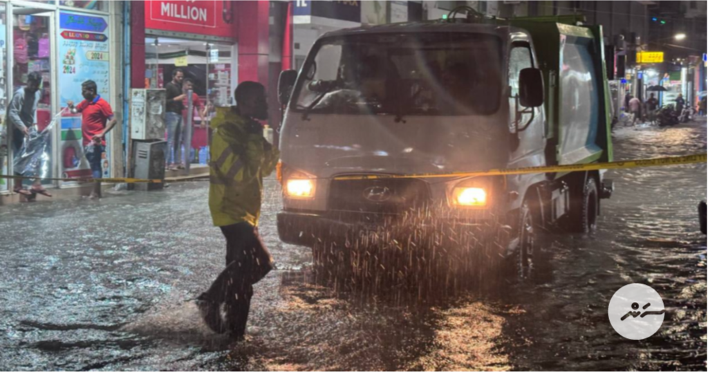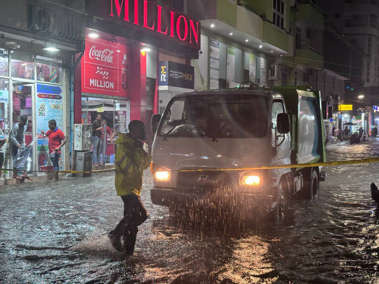 އިއްޔެއިން ފެށިގެން މާލެއަށް ބޯކޮށް ވާރޭވެހި، މަގުތަކުގައި ވަނީ ފެންބޮޑުވެފައެވެ. އެހެންކަމުން މަގުތަކުން ފެން ހިންދުމަށް ސިފައިން ވެސް ވަނީ ހަރަކާތްތެރިވެފައެވެ.