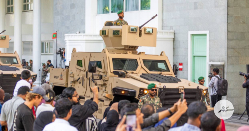 19 އެޕްރީލްް 2025: ދިވެހި ސިފައިންގެ 133ވަނަ އަހަރީ ދުވަސް ފާހަގަކުރުމަށް ބޭއްވި ޕެރޭޑު -- ސަން ފޮޓޯ/ މޫސާ ނަދީމް
