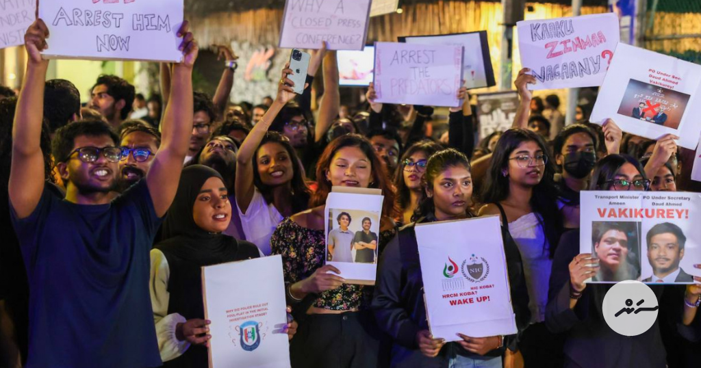 ވެއްޓުނު އަންހެން ކުއްޖާއަށް އިންސާފު ހޯދައިދޭން ގޮވާލައި ޒުވާނުން މަގުމައްޗަށް -- ސަން ފޮޓޯ/ މޫސާ ނަދީމް