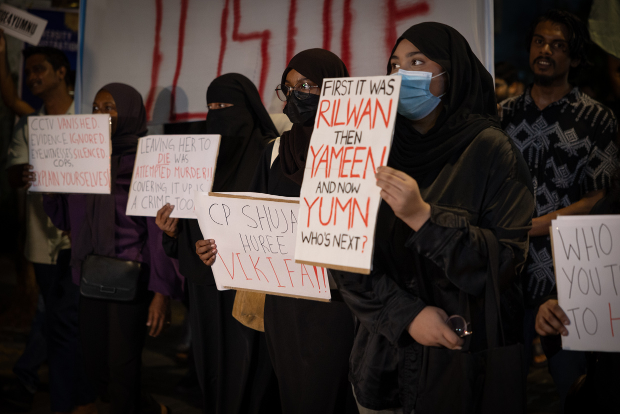 މުޒާހަރާގައި ބައިވެރީން ވަނީ ޔުމްނުގެ އާއިލާއާ ޒުވާނުންގެ ކިބައިން ރައީސް ޑރ. މުޙައްމަދު މުއިއްޒު މައާފަށް ގޮވާލާފައެވެ. އަދި، ޑިމާންޑުތަކުގެ ލިސްޓު ހިފައިގެން ރައީސް އޮފީހަށް ނުދާނެ ކަމަށް ވެސް ބައިވެރިން ވަނީ ގޮވާލާފައެވެ.