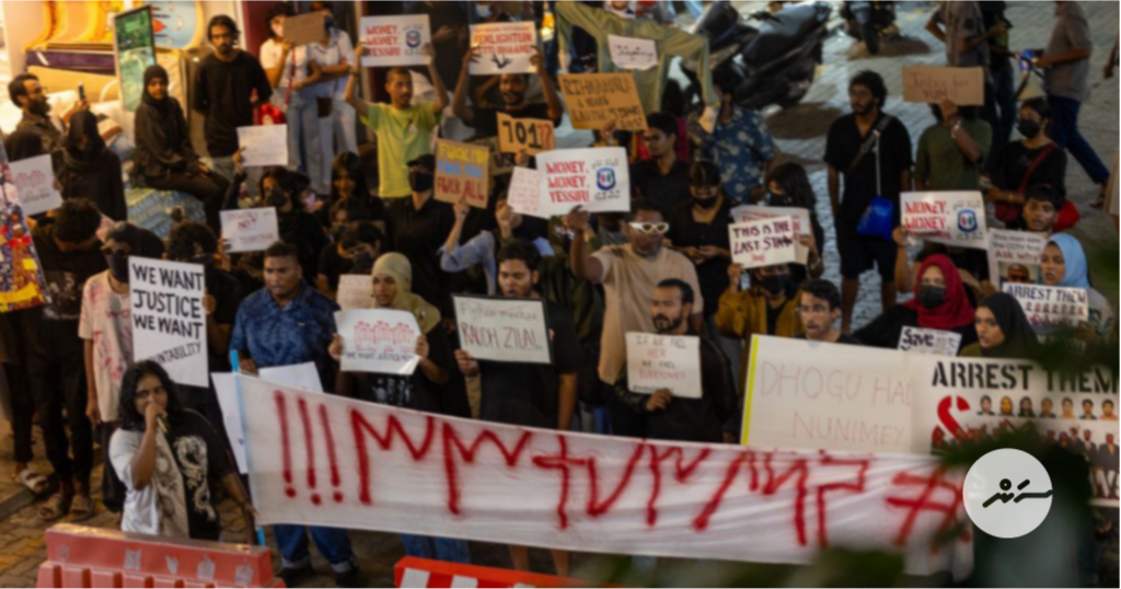 އެހެންކަމުން، ހީނަރުވެފައިވާ އިގުތިޞާދަށް ނުރަނގަޅު އަސަރެއް ކޮށްފާނެ އެއްވެސް ކަމަކަށް ޖާގަ ދިނުމެެއް ނެތި، ގާނޫނުން ލިބިދީފައިވާ އިހުތިޖާޖު ކުރުމުގެ ހައްގުގެ ބޭނުންކޮށް މުޒާހަރާ ކުރަމުންދާ ޒުވާނުންގެ ޑިމާންޑުތަކަށް އިޖާބަދިނުމަށް އެ ޖަމިއްޔާއިން ސަރުކާރަށް ވަނީ ގޮވާލާފައެވެ.