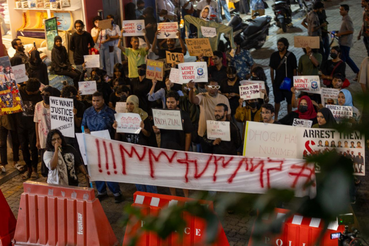 ޒުވާނުން މުޒާހަރާ ކުރަނީ މި މައްސަލައިގައި ފުލުހުން އަމަލުކުރަމުންދާ ގޮތުން ޝައްކު ކުރެވޭ ކަންތައްތަކެއް ކުރިކަމަށް ބުނެއެވެ. އަދި މި މައްސަލައިގައި ޓްރާންސްޕޯޓް މިނިސްޓަރު މުހައްމަދު އަމީން ދިރިއުޅުއްވާ ގެއާއި އޭނާއަށް ބޮޑުބޭބެ ކިޔާ ދެމީހުން ޝާމިލްވާތީ މި މައްސަލައަށް އަމީން ނުފޫޒު ފޯރުވާކަމަށް ގިނަ ބަޔަކު ދަނީ ބުނަމުންނެވެ.