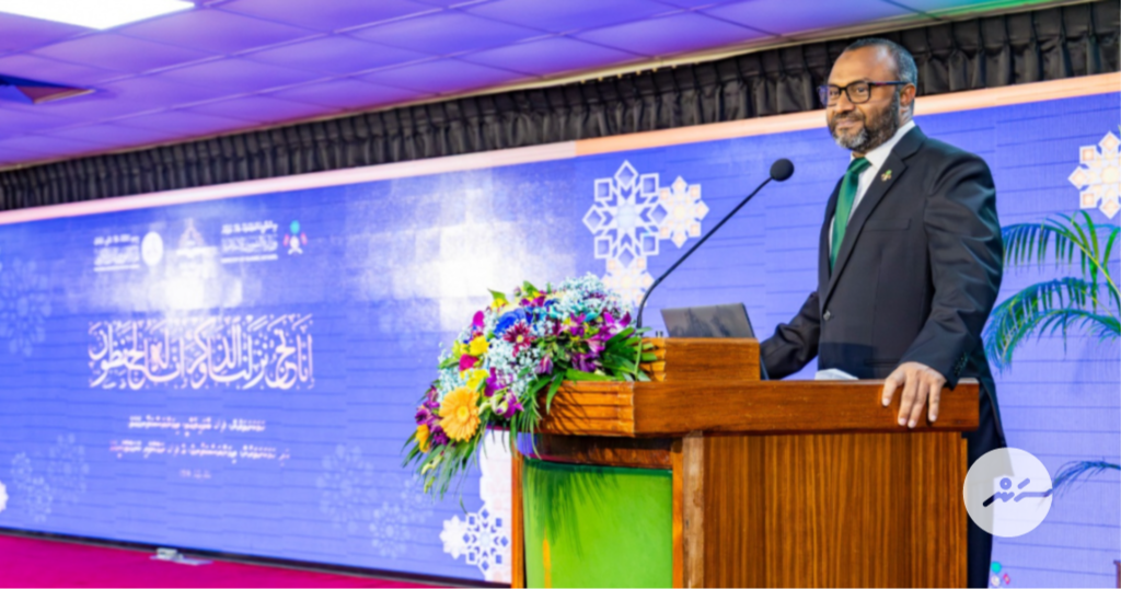 ގުރުއާން ކިޔެވުމުގެ 37ވަނަ ގައުމީ މުބާރާތް ފެށުމުގެ ޖަލްސާގައި އިސްލާމިކް މިނިސްޓަރު ޝަހީމް ވާހަކަދައްކަވަނީ -- ފޮޓޯ: އިސްލާމިކް މިނިސްޓްރީ