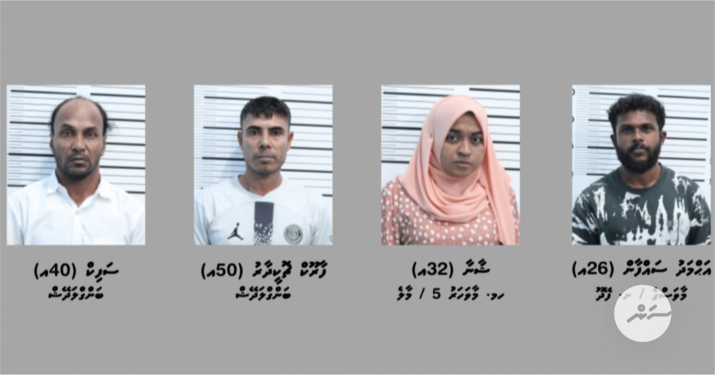 މި މައްސަލައިގައި ހައްޔަރުކޮށް ބަންދު މުއްދަތު ޖެހީ، ދެ ދިވެހީންނާއި ބަންގްލަދޭޝްއަށް ނިސްބަތްވާ ދެމީހުންގެ މައްޗަށެވެ. އެއީ،