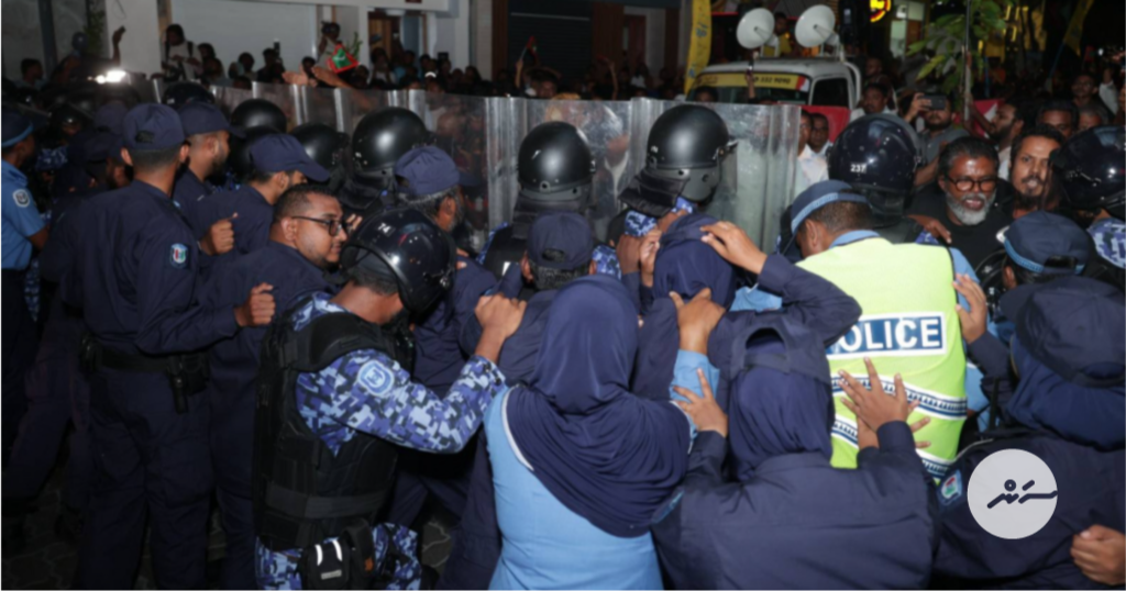 މިދިޔަ ހުކުރު ދުވަހުގެރޭ އިދިކޮޅު އެމްޑީޕީން ބޭއްވި އެއްވުން ރޫޅާލުމަށް ފުލުހުން ލޯންގް ރޭންޖް އެކޯސްޓިކް ޑިވައިސް (އެލްއާރުއޭޑީ) ބޭނުންކުރުމާއި ހާލަތާ ނުބައްދަލު ބާރު ބޭނުންކުރި ކަމަށް ބުނެ ރައްޔިތުންގެ މަޖިލީހަށް އެ ޕާޓީން ހުށަހެޅި ކުއްލި މައްސަލަ ބޭރުކޮށްލައިފިއެވެ.