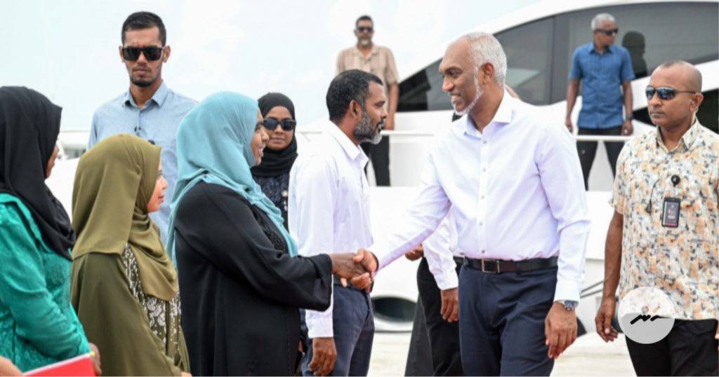ރައީސް މުއިއްޒު ށ. އަތޮޅުގައި: އެ މަނިކުފާނު ވިދާޅުވީ ދެން ފެންނާނީ މަޝްރޫއުތައް ނިމޭތަން ކަމަށް -- ފޮޓޯ/ ރައީސް އޮފީސް