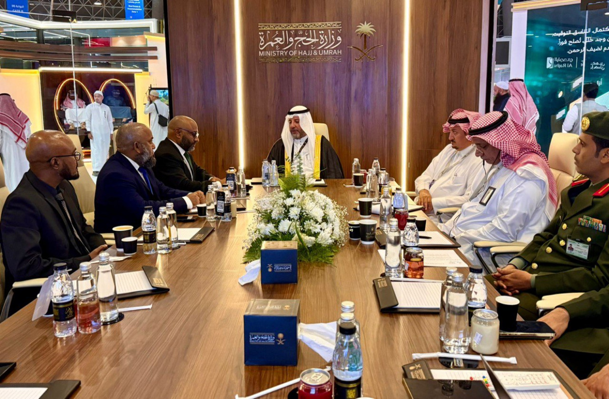 މައްކާ ރޫޓް އިނީޝިއޭޓްގެ ސުޕަވައިޒަރީ ކޮމެޓީއާއިއެކު ރާއްޖެއިން ބޭއްވި ބައްދަލުވުމުގެ ތެރެއިން: އިމިގްރޭޝަން މަރުހަލާ ލުއިކޮށްދޭ މައްކާ ރޫޓު ރާއްޖެއަށް ދާއިމީކުރުމަށް ސަޢުދީ އަރަބިއްޔާގެ ސަރުކާރުން ނިންމައިފި ---ފޮޓޯ: އިސްލާމިކް މިނިސްޓްރީ
