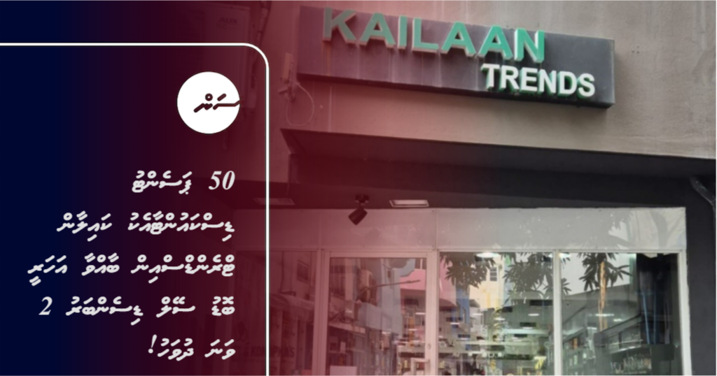 ކައިލާން ޓްރެންޑްސް ފިހާރަ: 50 ޕަސެންޓުގެ ޑިސްކައުންޓާއެކު ކައިލާން ޓްރެންޑްސްއިން ބާއްވާ އަހަރީ ބޮޑު ސޭލް ޑިސެންބަރު 2 ވަނަ ދުވަހު ފަށަނީ -- ފޮޓޯ/ ކައިލާން