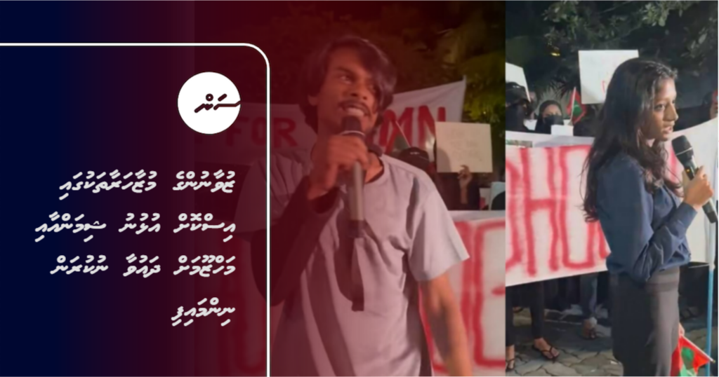 މިދިޔަ އޭޕްރީލް މަހުގެ ތެރޭގައި ހ. މިޓާޒް ގޭގެ ފުރާޅުމައްޗަށް ވެއްޓުނު ހައްވާ ޔުމްނު ރަޝީދަށް އިންސާފު ހޯދައި ދިނުމަށް ގޮވާލައި، ޒުވާނުންތަކެއް ކުރި މުޒާހަރާތަކުގައި އިސްކޮށް އުޅުނު އައިޝަތު ޝިމަން އަހުމަދާއި އަބްދުﷲ މަހްޒޫމް މާޖިދުގެ މައްޗަށް ދައުވާ ނުކުރަން ޕްރޮސެކިއުޓާ ޖެނެރަލްގެ އޮފީހުން ނިންމައިފިއެވެ.