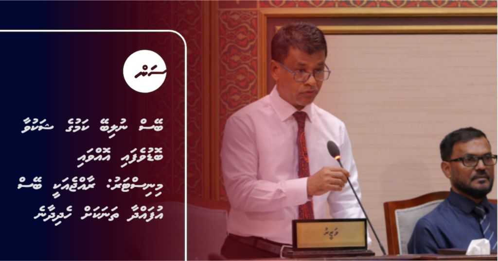 ރައްޔިތުންގެ މަޖިލީހުގެ މިއަދުގެ ޖަލްސާގައި ހެލްތު މިނިސްޓަރު އަބްދުﷲ ނާޒިމް އިބްރާހީމް: ވިދާޅުވީ ރާއްޖެއަކީ ބޭސް އުފައްދާ ތަނަކަށް ހެދިދާނެ ކަމަށް -- ފޮޓޯ/ މަޖިލިސް