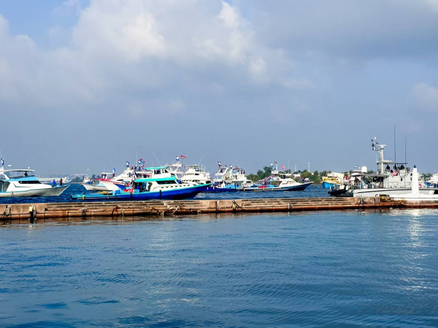 ބޮޑުކަންނެލި މަސްވެރިން މާލެއަަށް އެއްވެ، މާލޭ ބޭރުމަތީގައި އިހުތިޖާޖުކުރަނީ -- ސަން ފޮޓޯ/ މޫސާ ނަދީމް