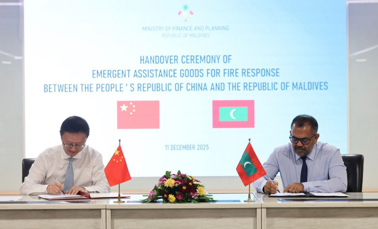 މިދިޔަ އަހަރުގެ ޑިސެމްބަރުގައި ހައުސިން މިނިސްޓްރީން ހިންގާ އިމާރާތުގައި ހިނގި އަލިފާނުގެ ހާދިސާއެއްގެ ސަބަބުން، ސަރުކާރުގެ އެތައް މިނިސްޓްރީއެއްގެ މަސައްކަތަށް ބުރޫއެރުމާ ގުޅިގެން ޗައިނާގެ ފަރާތުން ދިން އެހީ، ރަސްމީކޮށް ރާއްޖެއާ ހަވާލުކޮށްފިއެވެ.