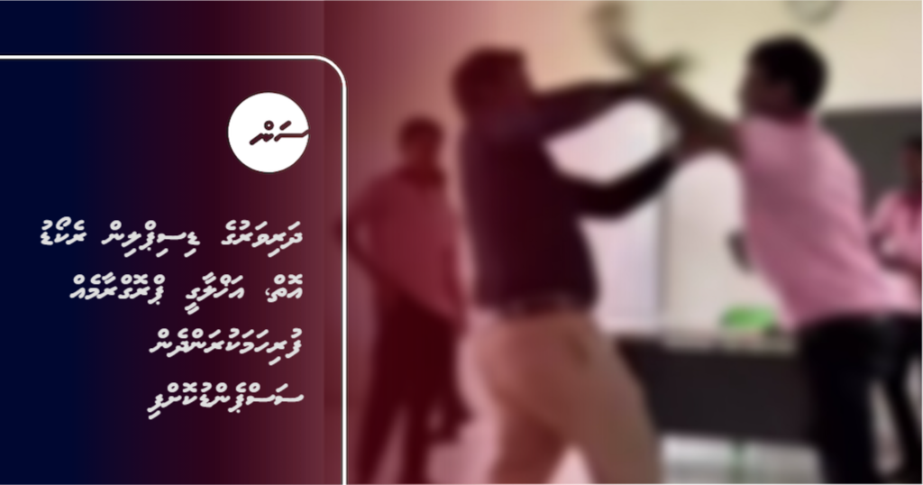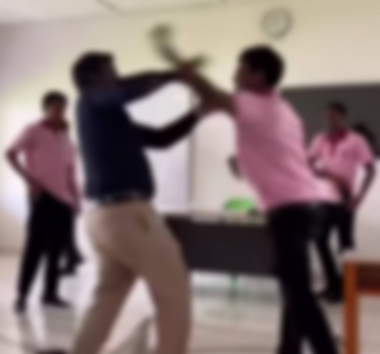އެއަށްފަހު، ބިންމަތިން ތެދުވެ، ދަރިވަރު ޓީޗަރުގެ ކޮނޑުގައި ޖަހަން މަސައްކަތްކުރުމުން ޓީޗަރު ދަރިވަރު ދުރަށް ޖައްސަން އުޅުނު މަންޒަރު އެ ވީޑިއޯއިން ފެނެއެވެ. އޭގެ ފަހުން ފިރިހެން ދަރިވަރު ޓީޗަރުގެ ގައިގައި ޖެހުމާއެކު، ރައްދުގައި ޓީޗަރު ކުއްޖާ ގައިގައި ބާރަށް އަތްލައެވެ. އަދި ދަރިވަރު ވެސް ފަހުން އަތްލައެވެ.