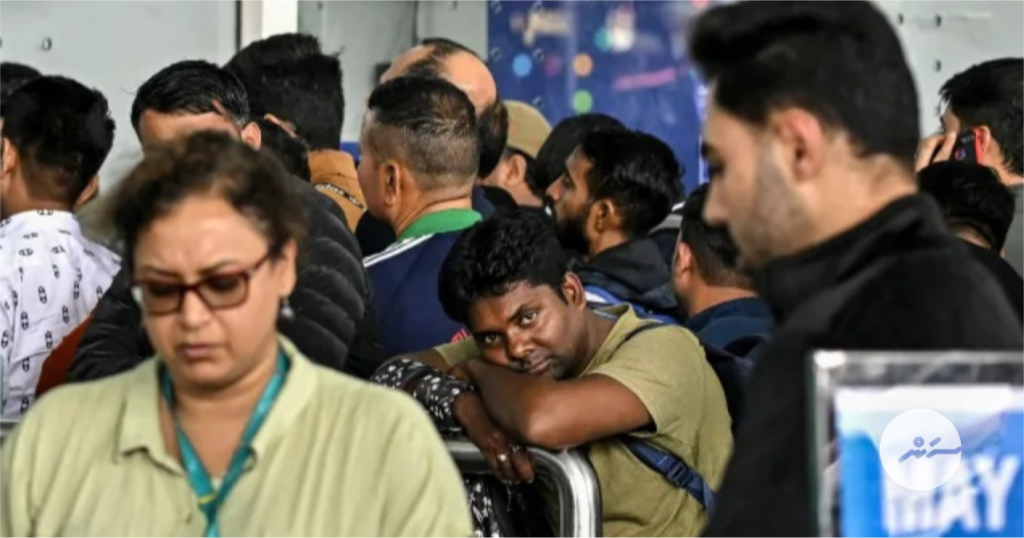 ފްލައިޓްތައް ކެންސަލް ވުުމުން އެއާޕޯޓުގައި މީހުން ތޮއްޖެހިފައި. ފޮޓޯ/އޭއެފްޕީ