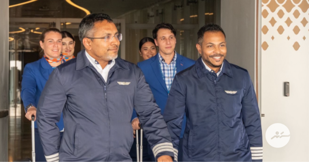 ދިވެހި ދެ ޕައިލެޓުންނާ އެކު އެ ފްލައިޓް އިއްޔެ ރާއްޖެ އައުމުން ވެލާނާ އިންޓަނޭޝަނަލް އެއާޕޯޓުން ވަނީ ހޫނު މަރުހަބާއެއް ކިޔައިފައެވެ.