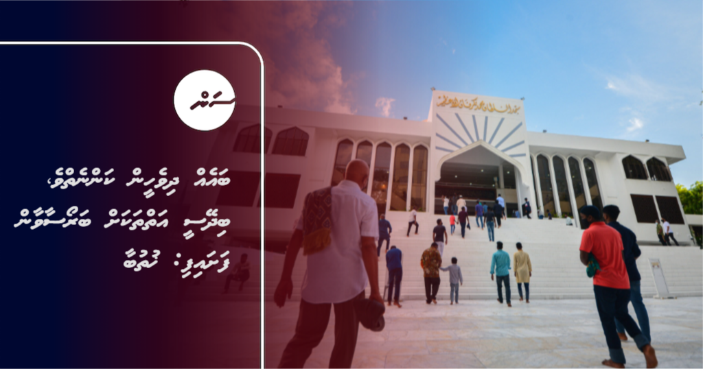 މީހުން ހުކުރު ނަމާދަށް ޖަމާވެ: ޚުތުބާގައި ވަނީ މަސައްކަތްތެރިވާން ގޮވާލާފައި -- ސަން ފޮޓޯ/ ފަޔާޒު މޫސާ