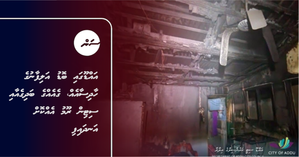 އައްޑޫ ސިޓީ، ހިތަދޫ އާޔާވިލާގައި އަލިފާން ރޯވެ މުޅި ގޭގެ ބޮޑުބައެއް އަނދައިފައި -- ފޮޓޯ: އައްޑޫ ސިޓީ ކައުންސިލް