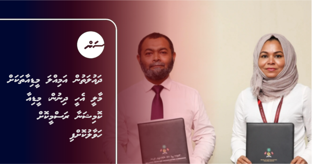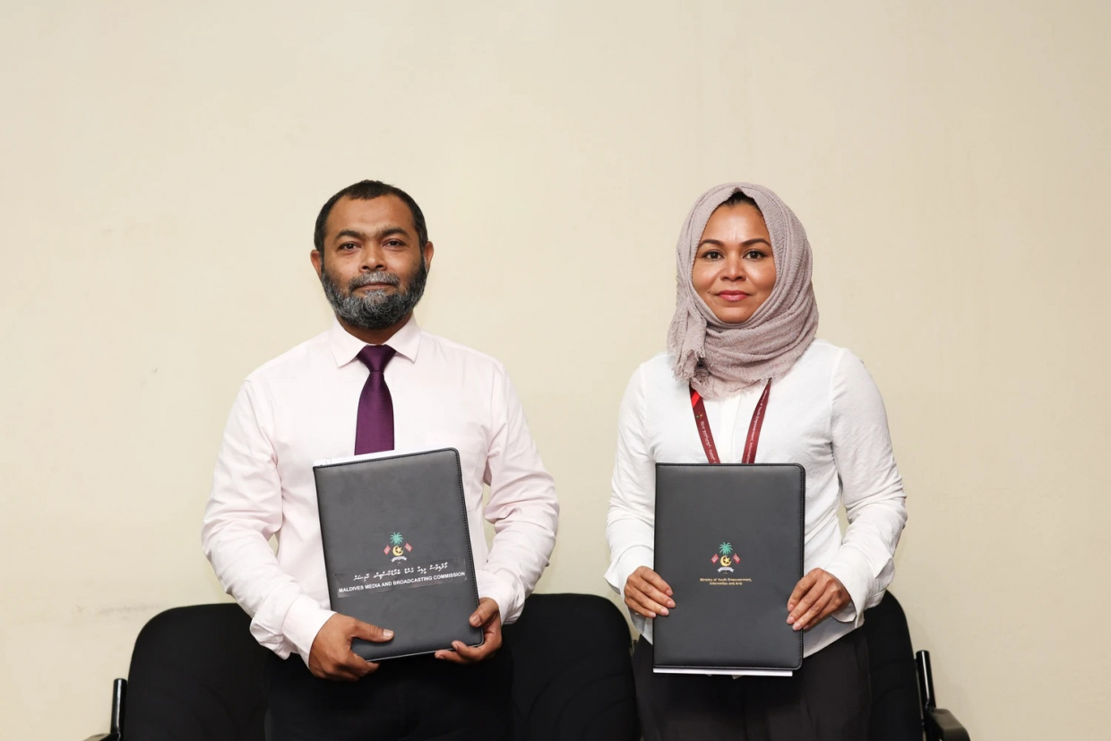 އަމިއްލަ މީޑިއާތަކަށް ދައުލަތުގެ ބަޖެޓުން މާލީ އެހީ ދިނުމަށް ކުރަންޖެހޭ މަސައްކަތްތައް ހަވާލުކުރުމަށް, ޔޫތު މިނިސްޓްރީ އާއި މޯލްޑިވްސް މީޑިއާ އެންޑް ބްރޯޑްކާސްޓިން ކޮމިޝަން (އެމްއެމްބީސީ)އާ ދެމެދު އެމްއޯޔޫއެއްގައި މިއަދު ސޮއިކޮށްފިއެވެ.