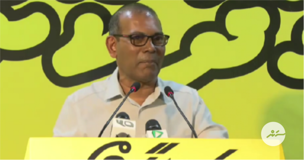 "އަޅުގަނޑު ހުރިހާ ރައްޔިތުންގެ ކިބައިން ވަރަށް އިޚްލާސްތެރިކަމާއެކު އެދެނީ އަލީ އާޒިމަށް ވޯޓު ދެއްވަން،" ނަޝީދު ވިދާޅުވިއެވެ.